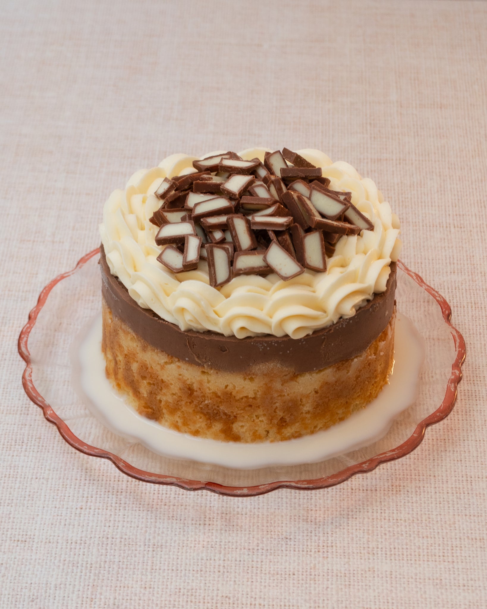 Pastel de tres leches con cheesecake con chocolate Kinder y