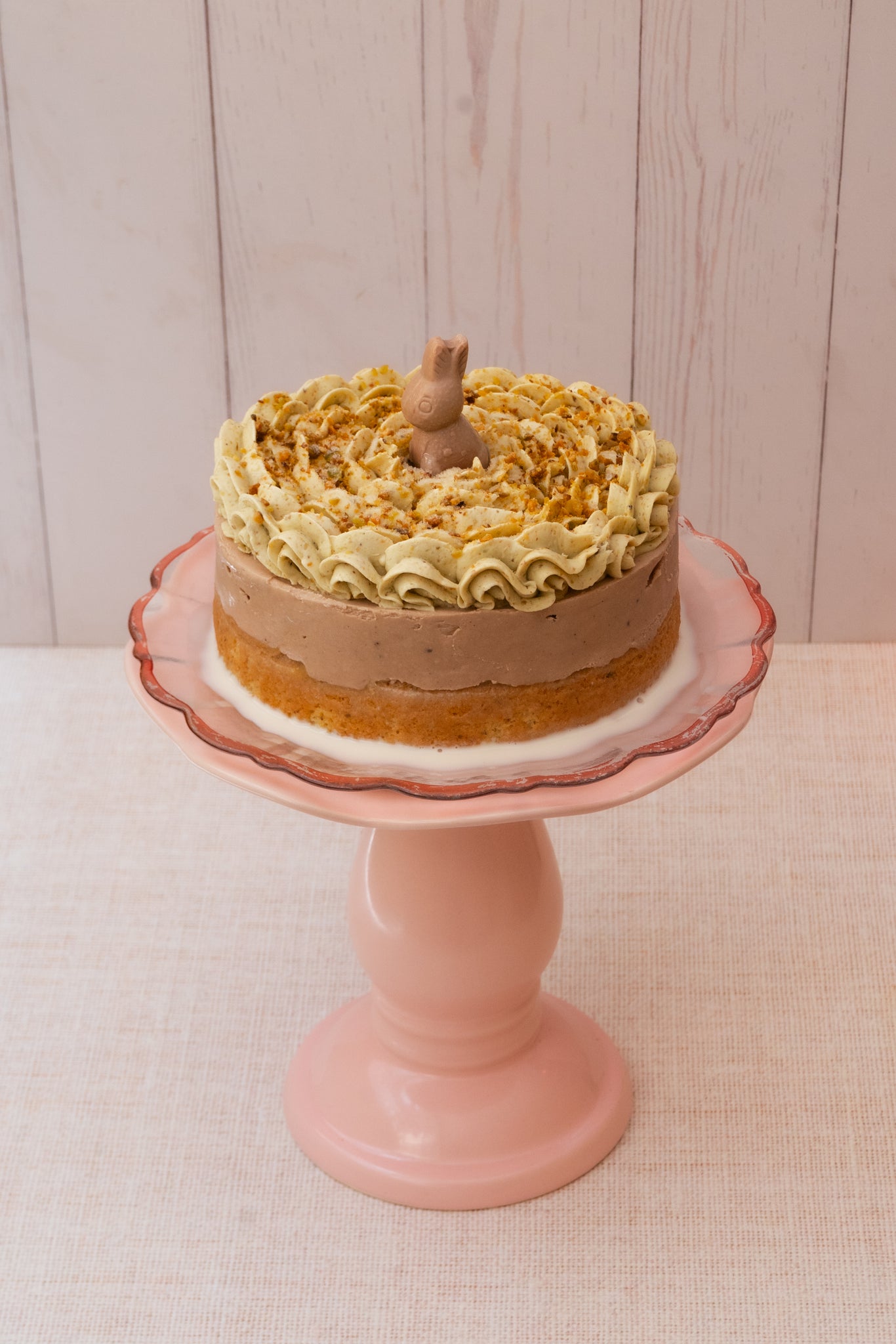 No me olvides Pistache: Nivel dulzor: 3 Es pastel de pistache en tres leches con una capa gruesa de cheesecake de conejito Turín y betún de pistache.15cm 5-10 porciones aprox. 1,2 kg