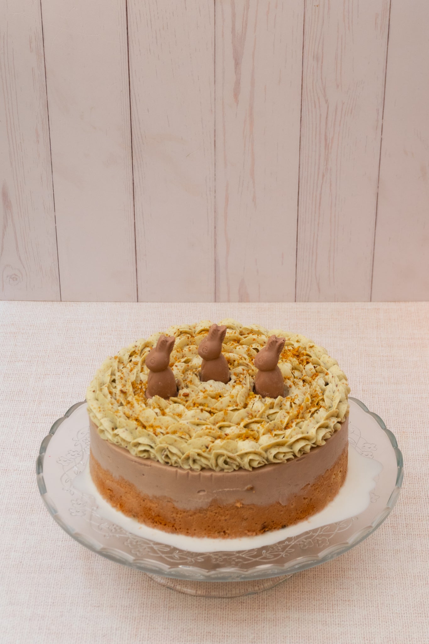 No me olvides Pistache: Nivel dulzor: 3 Es pastel de pistache en tres leches con una capa gruesa de cheesecake de conejito Turín y betún de pistache.20cm 12-16 porciones 2 kg